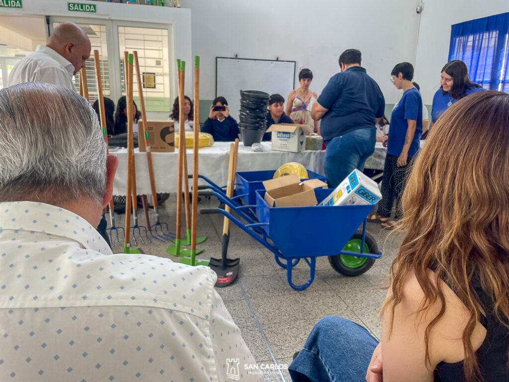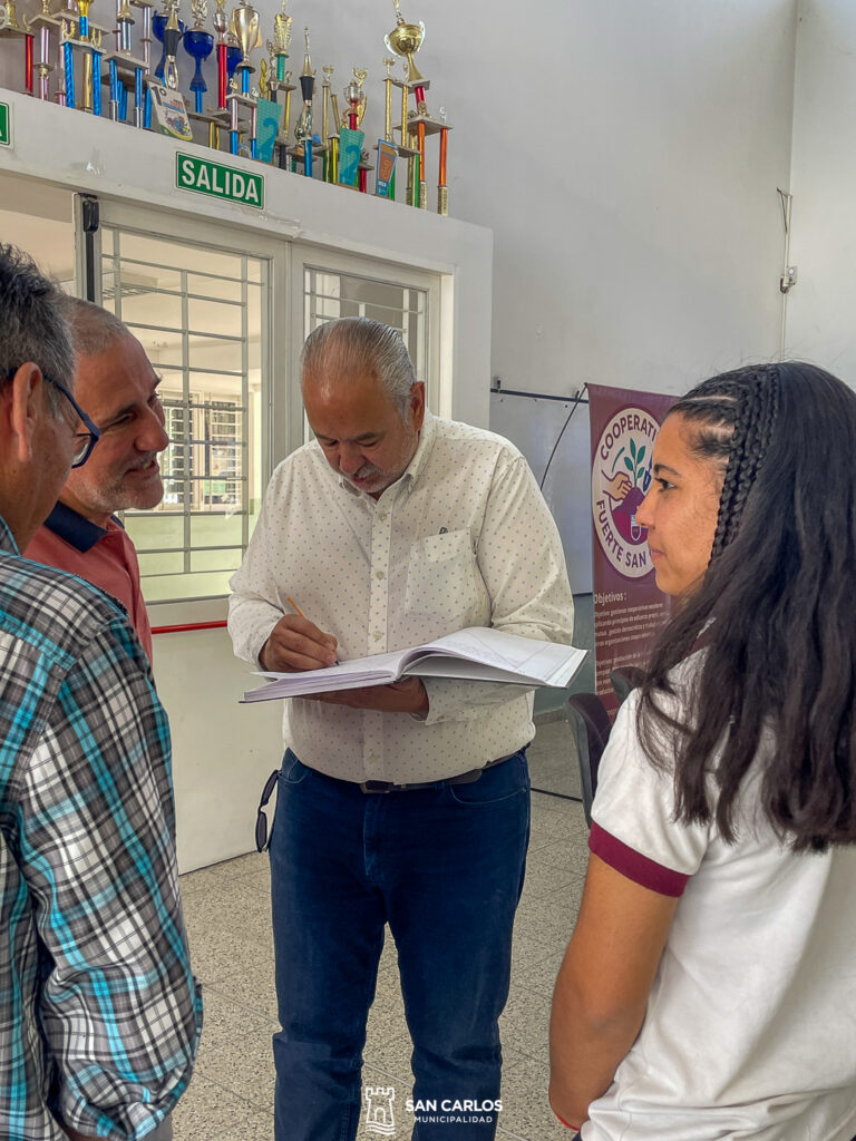Miguel Funes, destacó el trabajo de la cooperativa: «Acabamos de participar de una entrega de materiales que hace el programa de la provincia acá en la Escuela Fuerte San Carlos, y hemos aprovechado a hacer un resumen de las actividades que han hecho los chicos, que la verdad que son muy buenas. La cooperativa escolar hizo práctica de vivero, con todos los productos distribuidos y vendidos en eventos escolares.