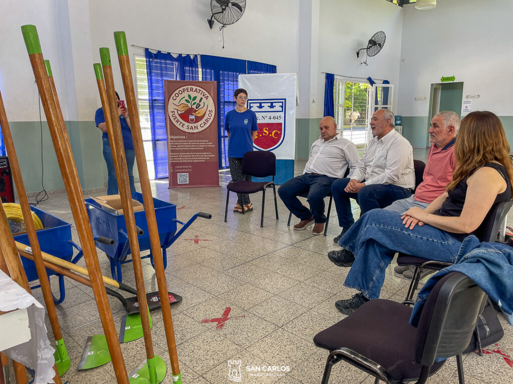 En un evento de reconocimiento al trabajo de la cooperativa escolar de la Escuela N° 4-045 Fuerte San Carlos, se realizó la entrega de materiales gestionados a través de un programa provincial .