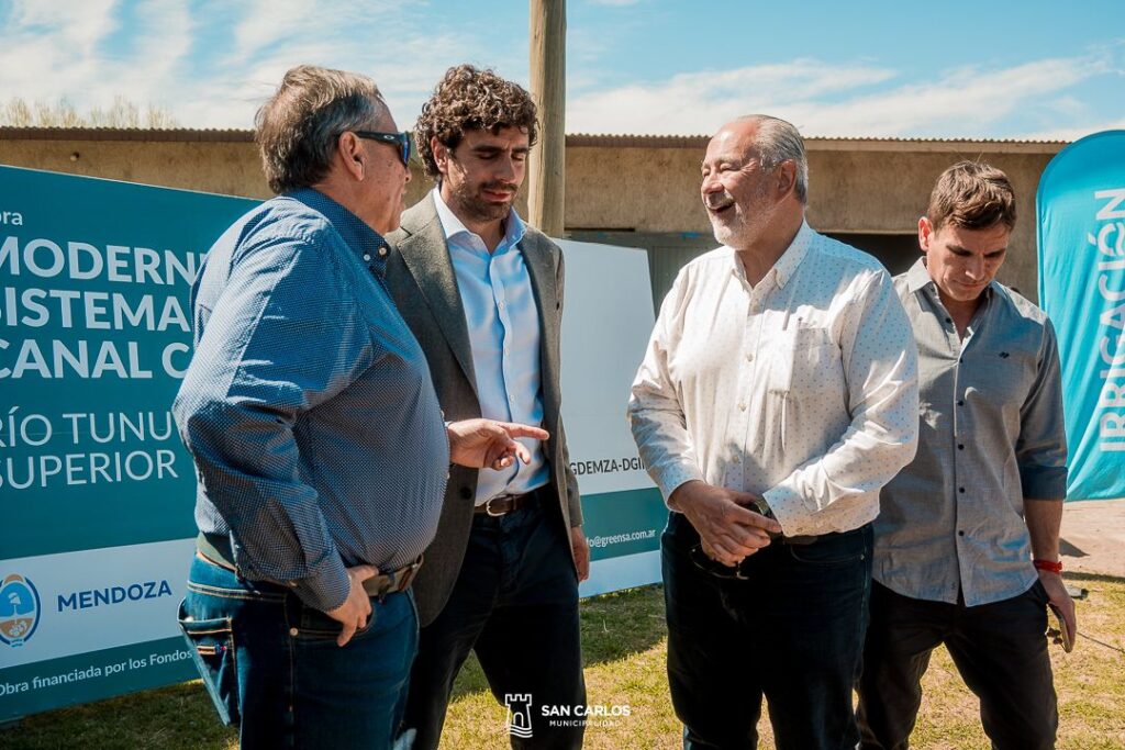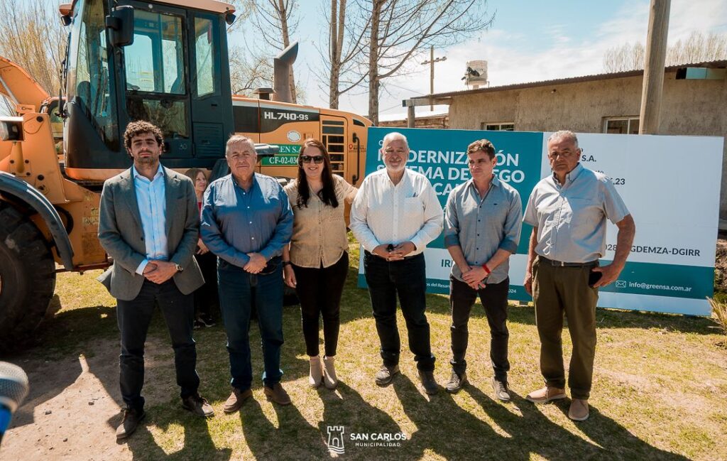 Este, Miércoles 24 de septiembre, el Intendente de San Carlos, Dr. Alejandro Morillas, junto al Ministro de Gobierno, Natalio Mema, el Superintendente General de Irrigación, Ing. Sergio Marinelli, y la Inspectora de Cauce Canal Matriz Valle de Uco, Natalia Martin, iniciaron el proyecto de Modernización del Sistema de Riego Canal Calise, una obra clave para optimizar el uso del agua y potenciar la producción local en el Valle de Uco.
