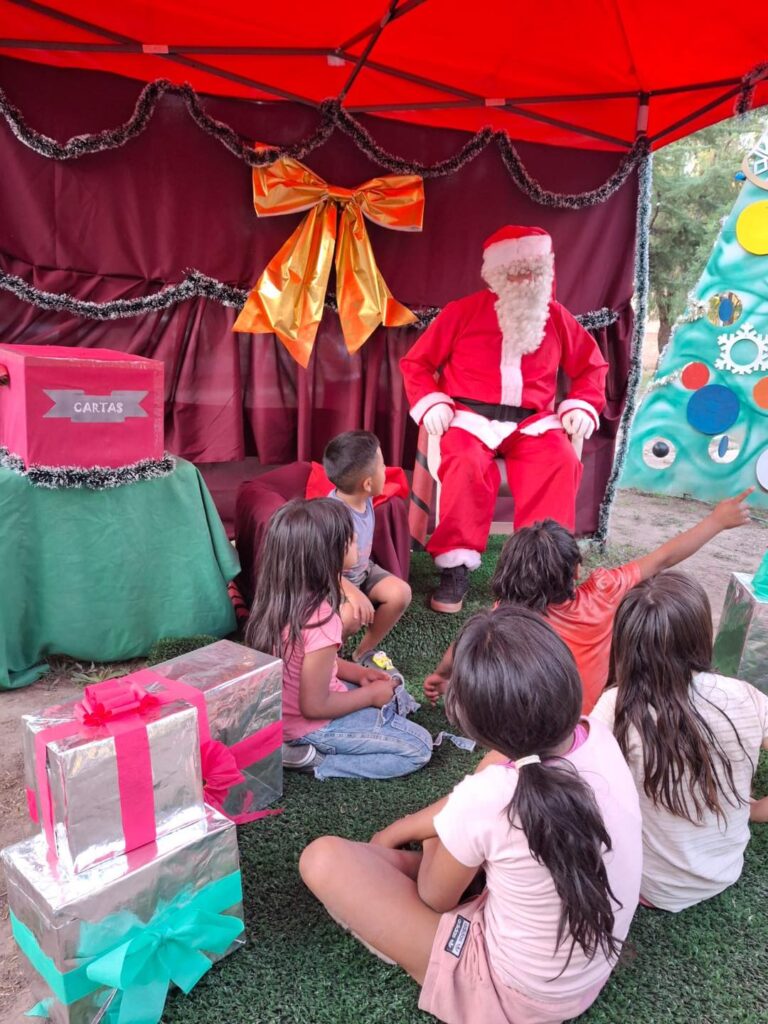 Entre luces, risas y miradas expectantes, niñas y niños se acercaron para compartir sus cartitas, escritas con manos pequeñas y sueños enormes. Papá Noel escuchó atentamente a cada uno de ellos, generando un espacio de cercanía donde el tiempo pareció detenerse para dar lugar a la magia de la infancia.